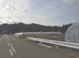 ●左折をして橋を越えると、ビニールハウスが見えてきます。手前は花屋さんのハウスです。 |